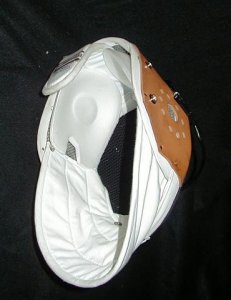 John Sullins addressed the problem by attaching a catchers face guard to a modern mask, and adding some extra padding to the inside sides of the mask.