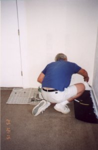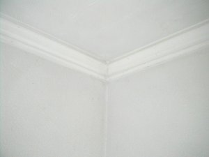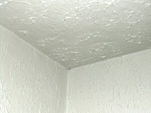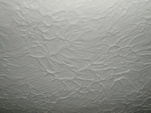Here is a close up of what the old ceilings looked like. Those little stalactites are up to an inch long. The next picture is what the ceiling looks like after geting sanded down (up?) and painted. Its a neat texture now, but I wouldn't try to duplicate it.