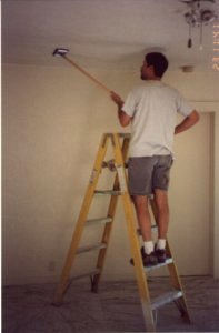 Here is how you sand a ceiling. It isn't as much fun as it looks, but there was plenty of work for friends and family to join in.