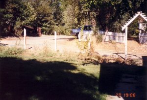 This picture is of the old driveway. Water would come down the road, spill down the driveway, and run up against that front corner of the house. According to the previous occupant, in one year about two inches of soil was eroded from under the picket fence.